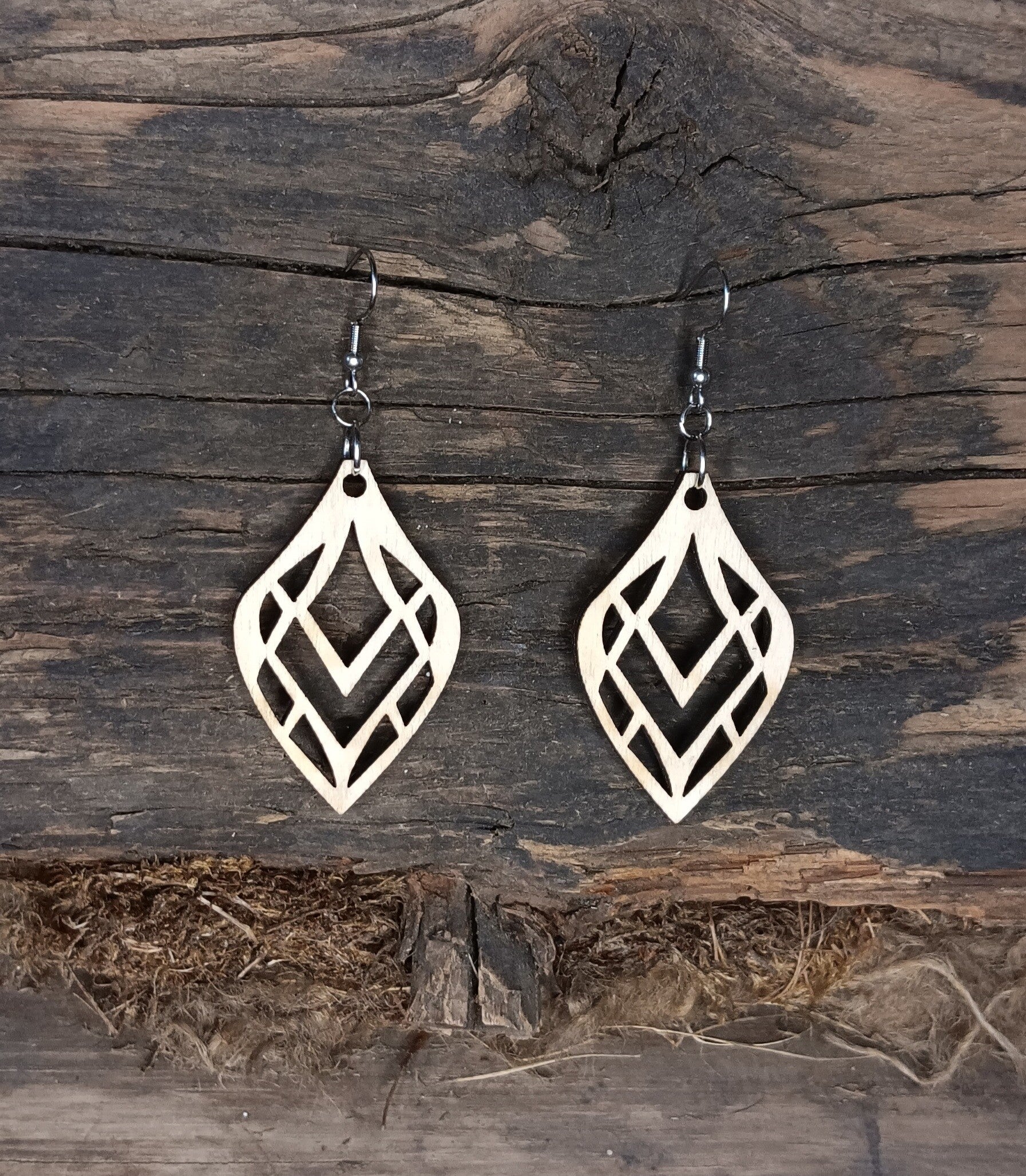 Korvakorun puuosan mitat; korkeus 4,5cm, leveys 3cm. Metalliosan pituus 2,5cm