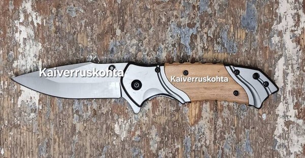 Puukon mitat taitettuna pituus 11 cm leveys 3cm paksuus 1,5cm.