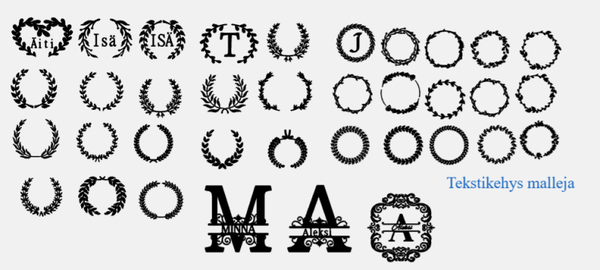 Lisää tähän haluamasi teksti ja fontti sekä sijoittelu, oletuksena Ariel teksti ellei toisin haluta