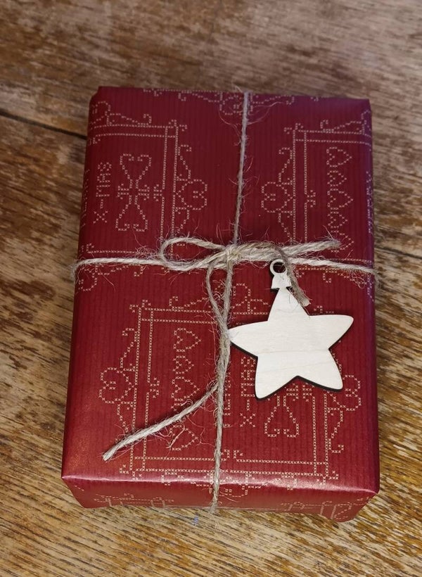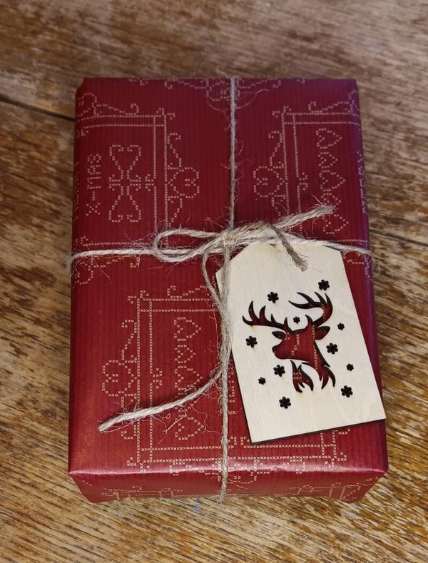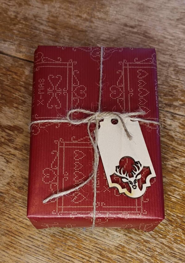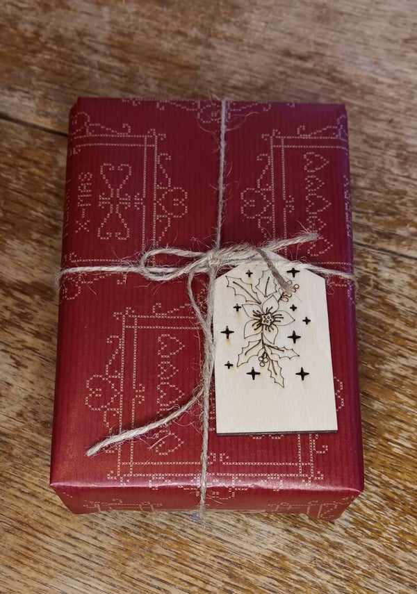 Puinen pakettikortti omalla tekstillä